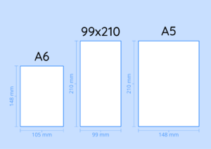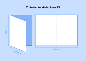 TAITETTU 4-sivuinen A5 2-puoleinen 4/4 (avattuna A4), HAITARITAITETTU 6-sivuinen 99×210 mm 2-puoleinen 4/4 (avattuna A4), KERIENTAITETTU 6-sivuinen 99×210 mm 4/4 (avattuna A4), TAITETTU 4-sivuinen A4 2-puoleinen 4/4 (avattuna A3)